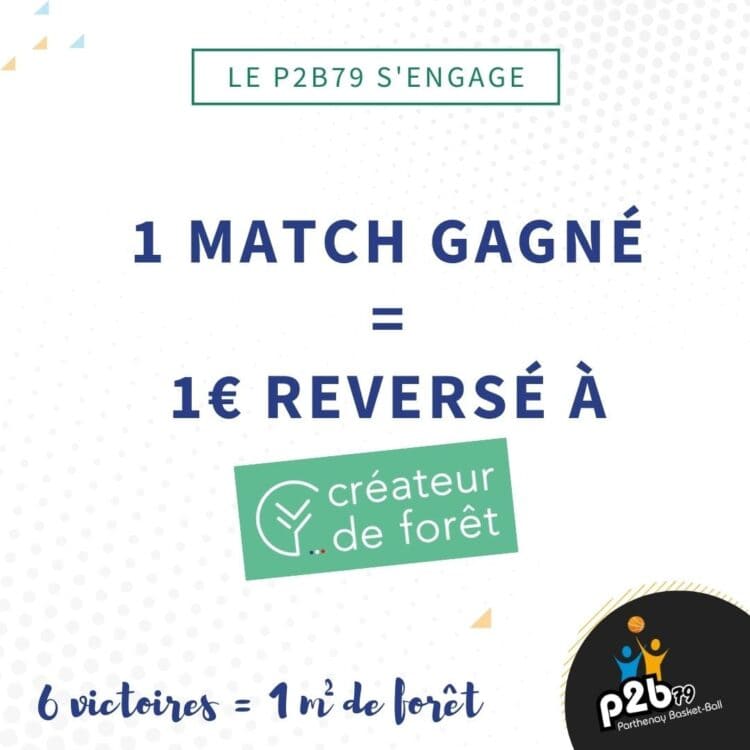 Alors là, on n’a pas trouvé plus facile ! Tu gagnes ton match, le club reverse 1€ à l’entreprise Créateur de Forêt, qui va se charger de créer des espaces de biodiversité à quelques kilomètres de Parthenay !